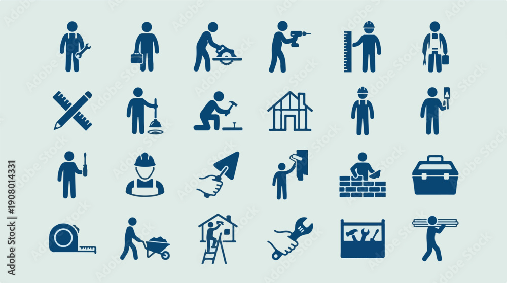 Construction and Renovation Icons: Workers, Tools, and Building Symbols #1908014331