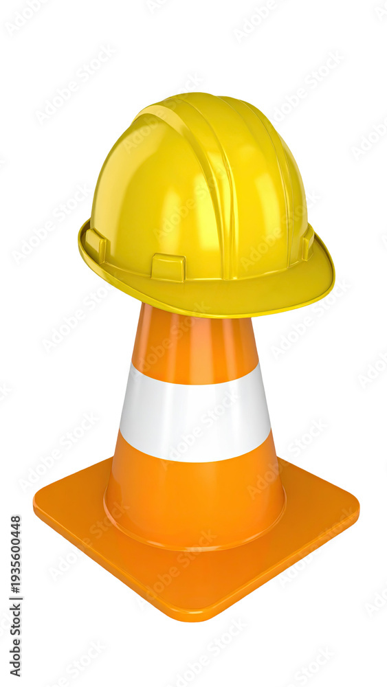 Construction safety cone traffic warning road sign isolated on white background #1935600448
