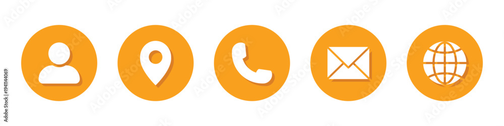 Contact information icon set, Business card icons, Website buttons containing person, location, call, mail and web address. Transparent PNG and vector illustration. #1941144069
