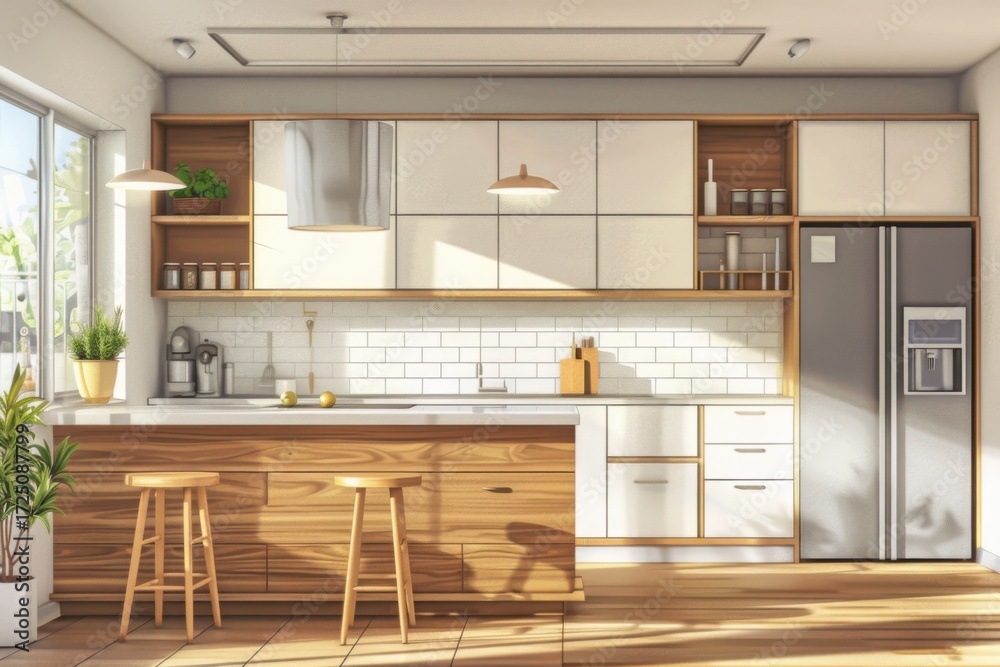 contemporary kitchen interior empty no people house room modern apartment design flat horizontal #1725087799