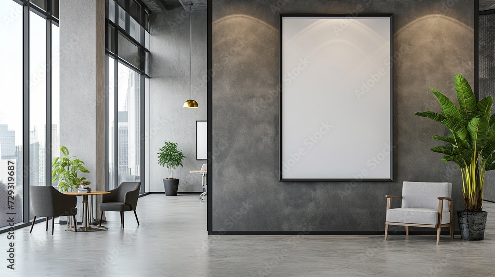 Contemporary living room interior featuring a luxurious fireplace, comfortable sofa, stylish furniture, and ample natural light #729319687