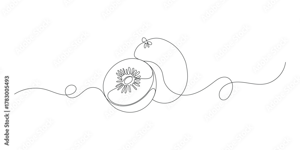 Continuous Kiwi Fruit one Line Drawing with Sliced Fruit #1783005493