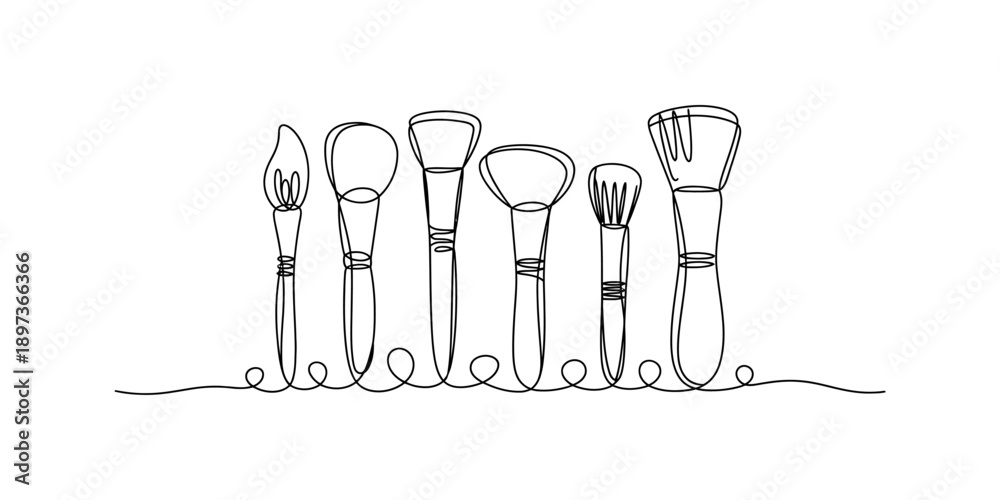 Continuous line art illustration showcasing a collection of essential beauty makeup tools Vector, illustration #1897366366