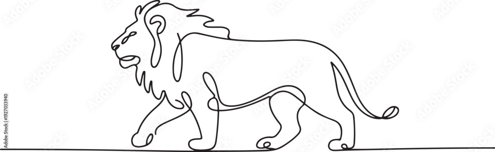 Continuous line drawing lion walking, Side view single linear decorative design concept. Lion abstract linear minimal style. one line Icon drawing #1927033940