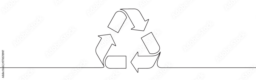 Continuous line drawing of a recycling symbol, representing environmental care and sustainability, isolated on a white background. #1776578947