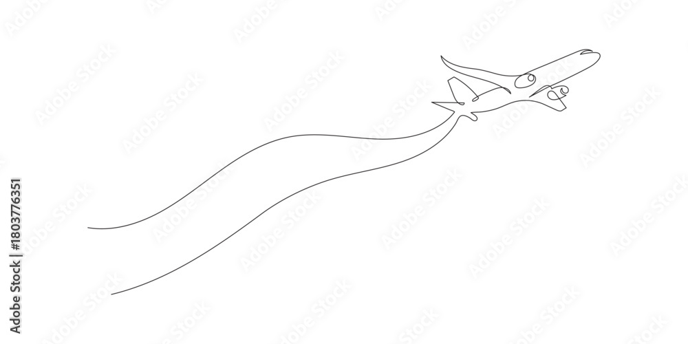 Continuous One line drawing of passenger airplane drawing art #1803776351