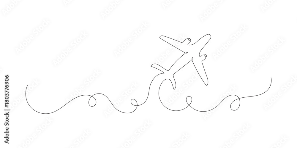Continuous One line drawing of passenger airplane illustration #1803776906