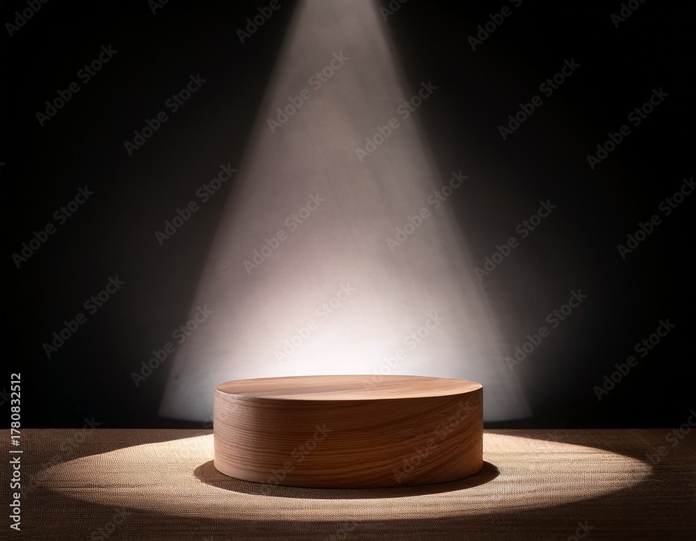 contrast lighting design with wooden cylinder pedestal #1780832512