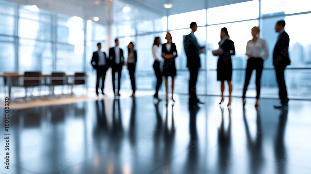 Corporate Dynamics: A blurred, yet captivating, image of a corporate team in a modern office space, embodying the essence of professional collaboration and strategic planning. #1895908279