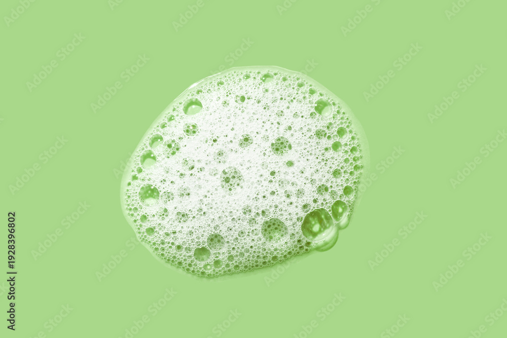 Cosmetic cleansing washing white soapy foam gel on apple green mint isolated background #1928396802