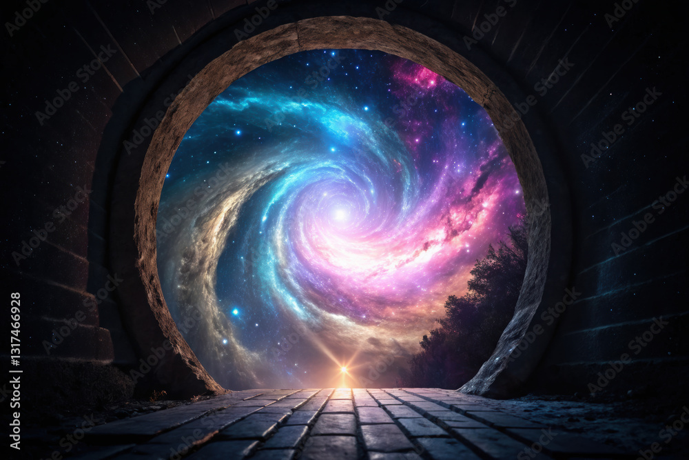 cosmic portal opening to vibrant galaxy, revealing new dimension #1317466928