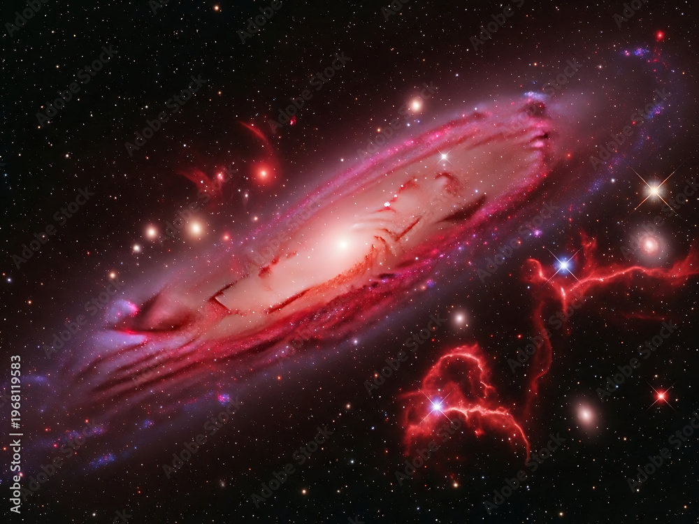 Cosmic spiral galaxy in deep space with star clusters and nebulae #1968119583