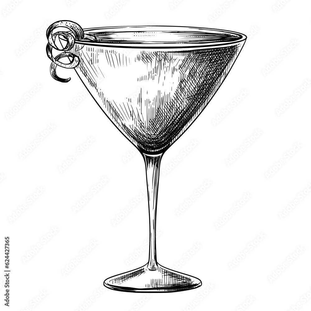 Cosmopolitan cocktail summer vintage vector sketch illustration. #624427365