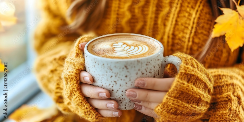 Cozy Autumn Coffee Break Warm Cup of Comfort, Perfect for Relaxing Indoors During Fall Season #1743587862