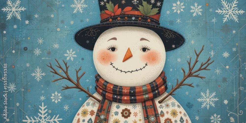 Cozy Holiday Illustration A Whimsical Snowman for Folk Art Lovers #1535195348