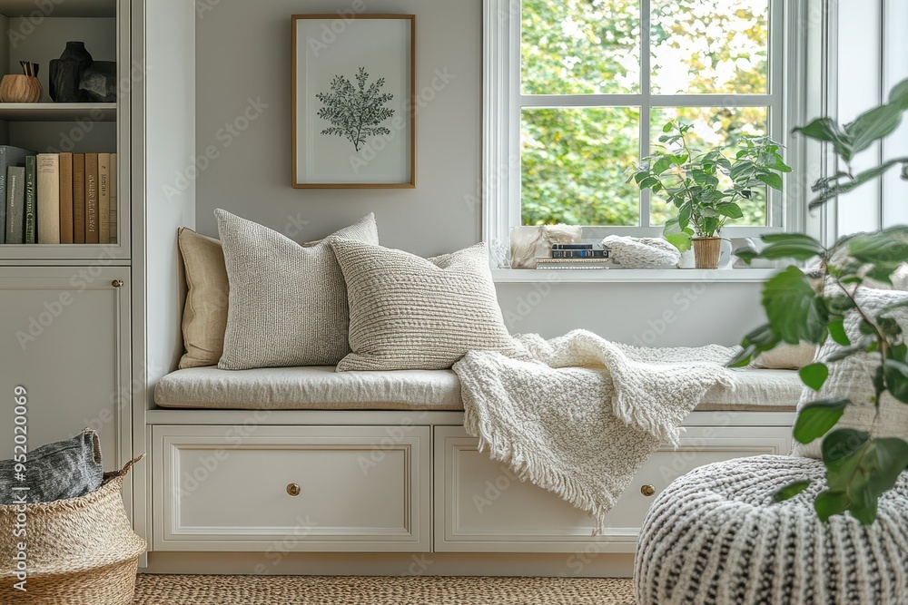 Cozy Window Seat with Frame Mockup and Books Collection for Relaxing Reading Nook Ambiance #952020069