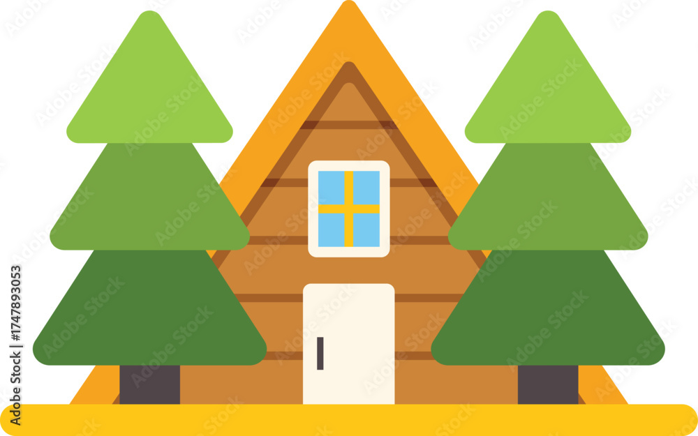 Cozy wooden cabin nestled among fir trees, evoking tranquility and escape in nature #1747893053