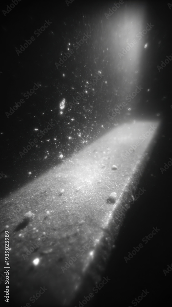 cracked abstract monochrome surface with intricate branching fissures illuminated by dramatic spotlight and floating particles #1939023989