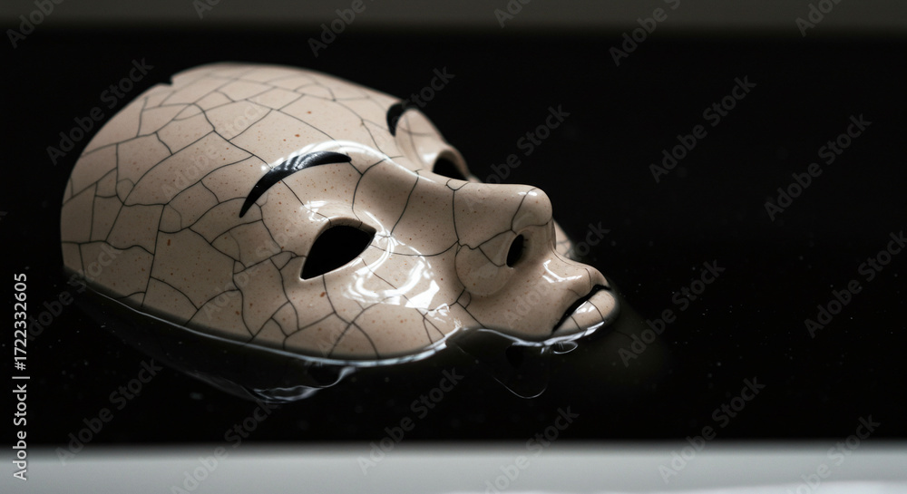 Cracked mask drama tragedy face expression art theatrical performance masquerade disguise anonymity identity #1722332605