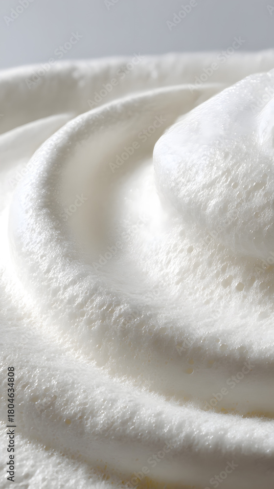 Creamy Swirl: A close-up view unveils a luxurious, swirling cascade of freshly whipped, delectable cream, inviting indulgence with its smooth, textured surface. #1804634808
