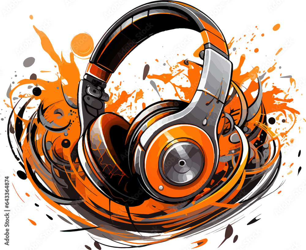 Creative and Musical Headphone Icon with Curves and Splashes AI Generative #643364874