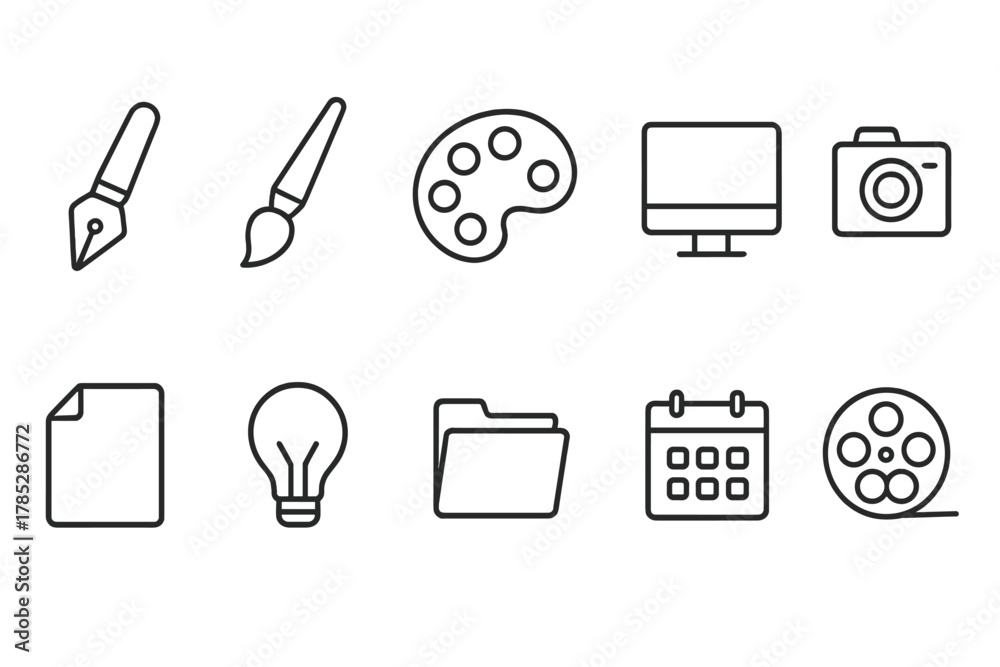 Creative arts and design line icon set. Tools, media, digital art collection. #1785286772