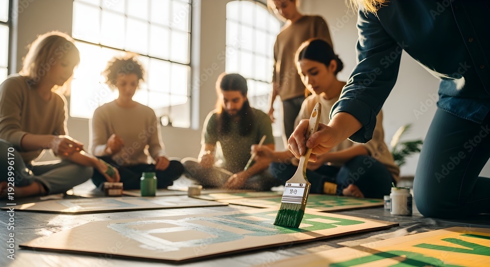 Creative Group Painting Green Art for St. Patricks Day Celebration in Sunny Studio Workshop #1928996170