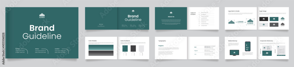 Creative Landscape Brand Guidelines template. Brand Strategy Guideline design. Brand Identity presentation design. Logo Guideline template. Logo Guide Book or Brand Manual Layout. #1455506028