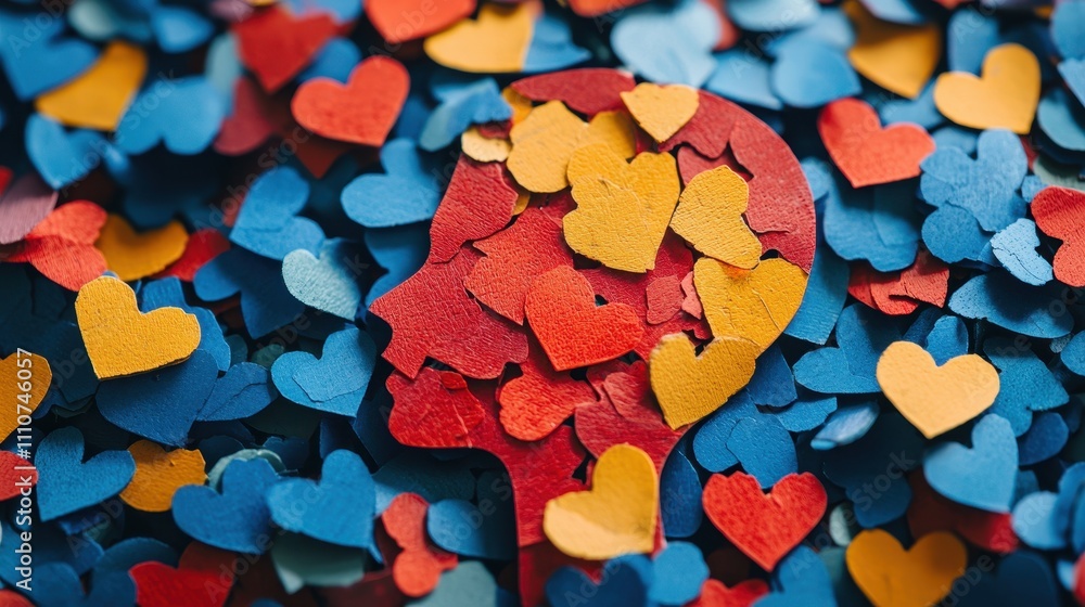 Creative Representation of Mental Health with Colorful Paper Hearts and Human Silhouette #1110746057