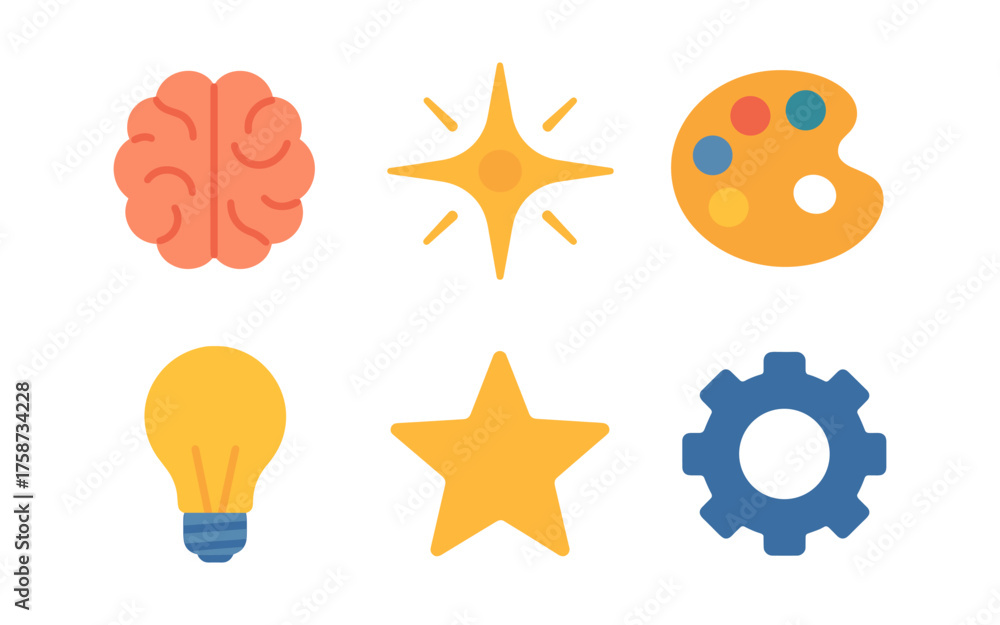 Creative symbols collection: brain, star, palette, light bulb, gear #1758734228