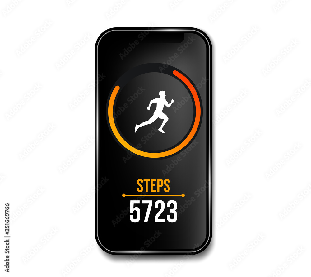 Creative vector illustration of fitness counter run app in phone and wrist band bracelet, activity tracker isolated on background. Art design smartphone template. Abstract concept graphic element #251669766