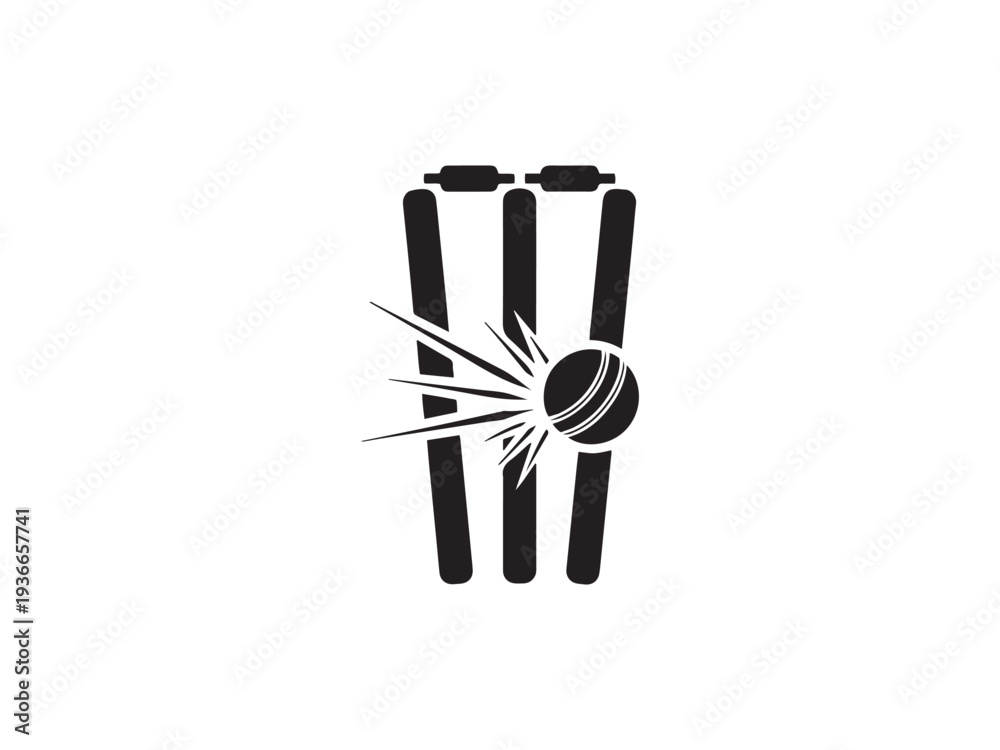 Cricket wicket with ball hitting stumps illustration. #1936657741