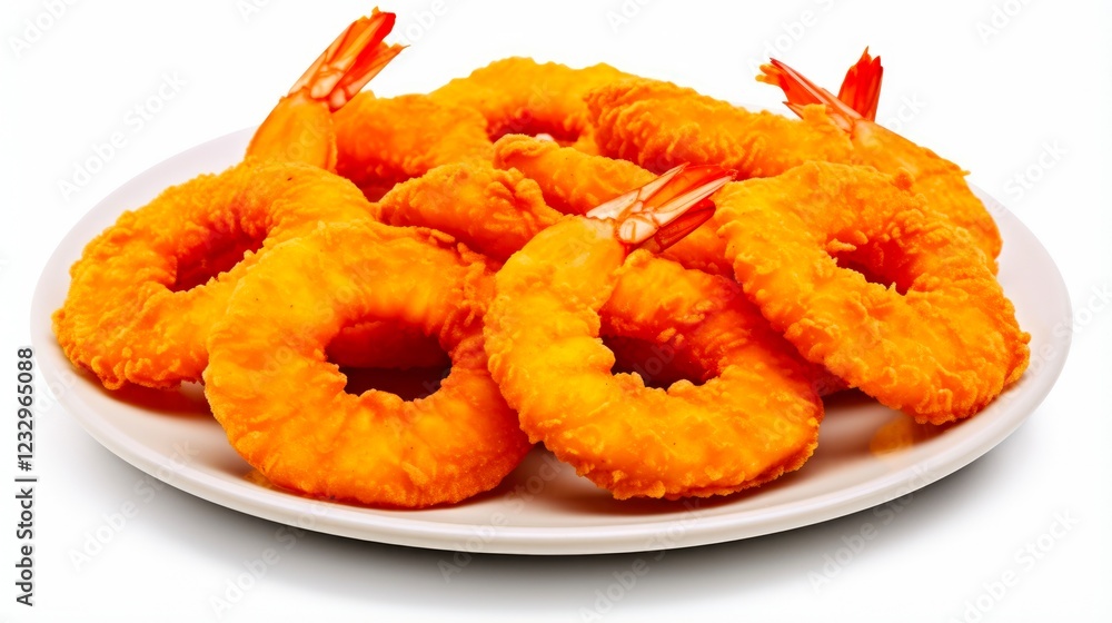 Crispy Fried Jumbo Shrimp with Tails. Delicious and Gargantuan Crustacean Scampi on White Background for Seafood Menu Design #1232965088