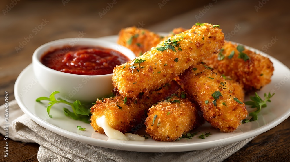 Crispy Mozzarella Sticks with Marinara Dipping Sauce #1526397857