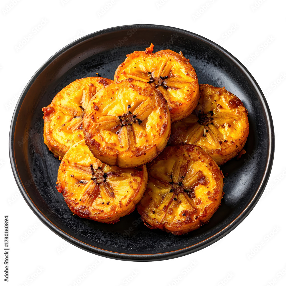 Crispy tostones fried plantains isolated on white, a savory and golden brown latin american snack made from double fried green plantains #1780160894