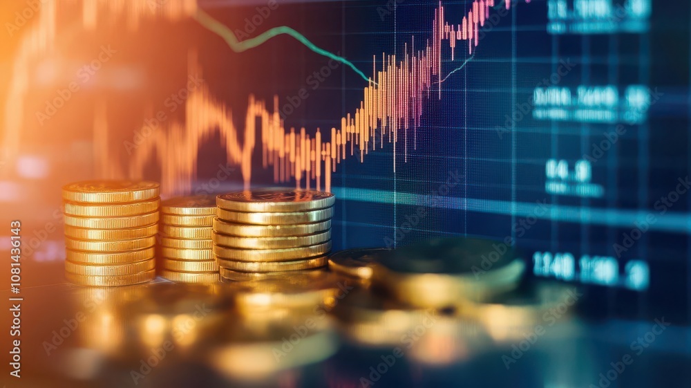Cryptocurrency Inflation, A financial chart displaying inflation trends alongside a fluctuating cryptocurrency market graph #1081436143