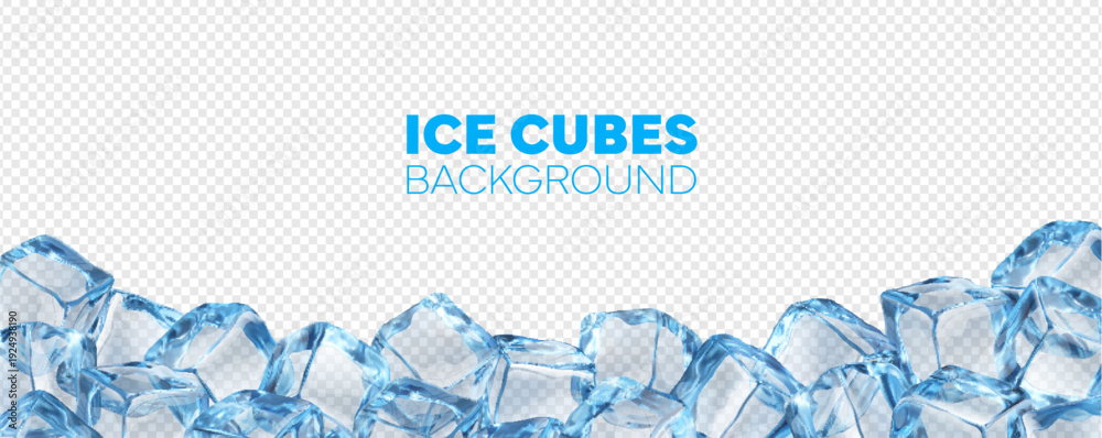 Crystal ice block cubes frame background. Vector realistic transparent blue frozen water cubes frame border line. 3d frosty ice blocks pile background with clear icy texture and glossy facets #1924938190