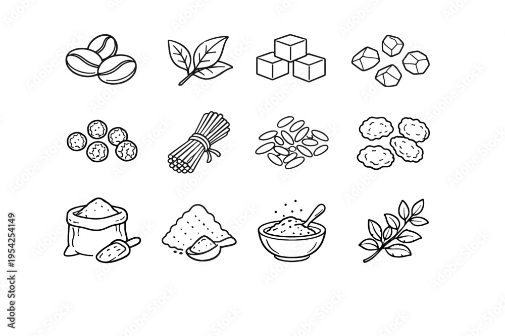 Cubes leaves basics flakes grains kitchen vector icons mix coffee tea salt #1954254149