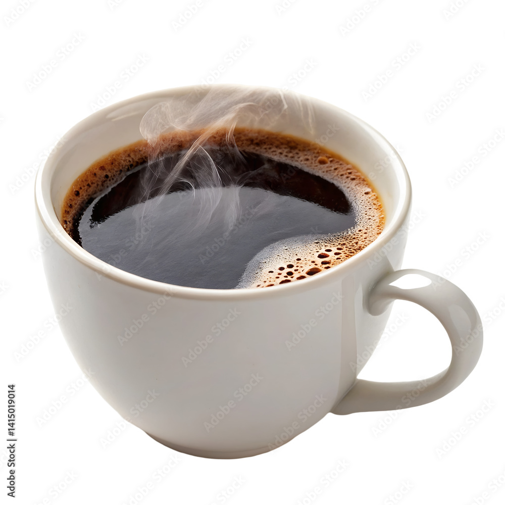 Cup of coffee with steam isolated on transparent background for morning drink visuals #1415019014