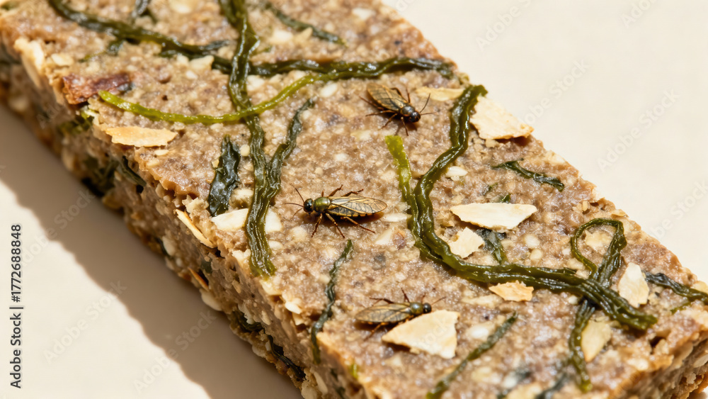 Curious Brown Insect Protein Bar with Green Seaweed Texture #1772688848