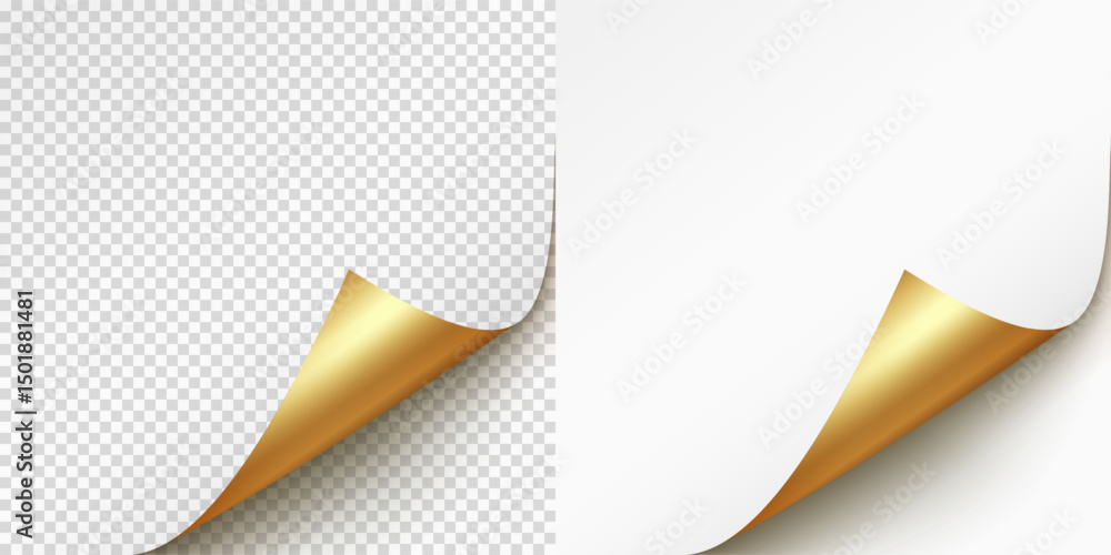 Curled page corner isolated on transparent and white background. Blank curve paper edge, bent sheet, note angle with realistic shadow. Vector rolled up stickers, peel banners #1501881481