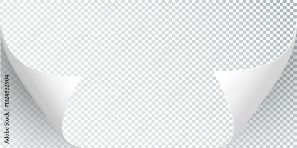 Curly Page Corner realistic illustration. Curled corners set. Paper page curl corner, flip turn fold sheet. Sticker. Vector #1324832904