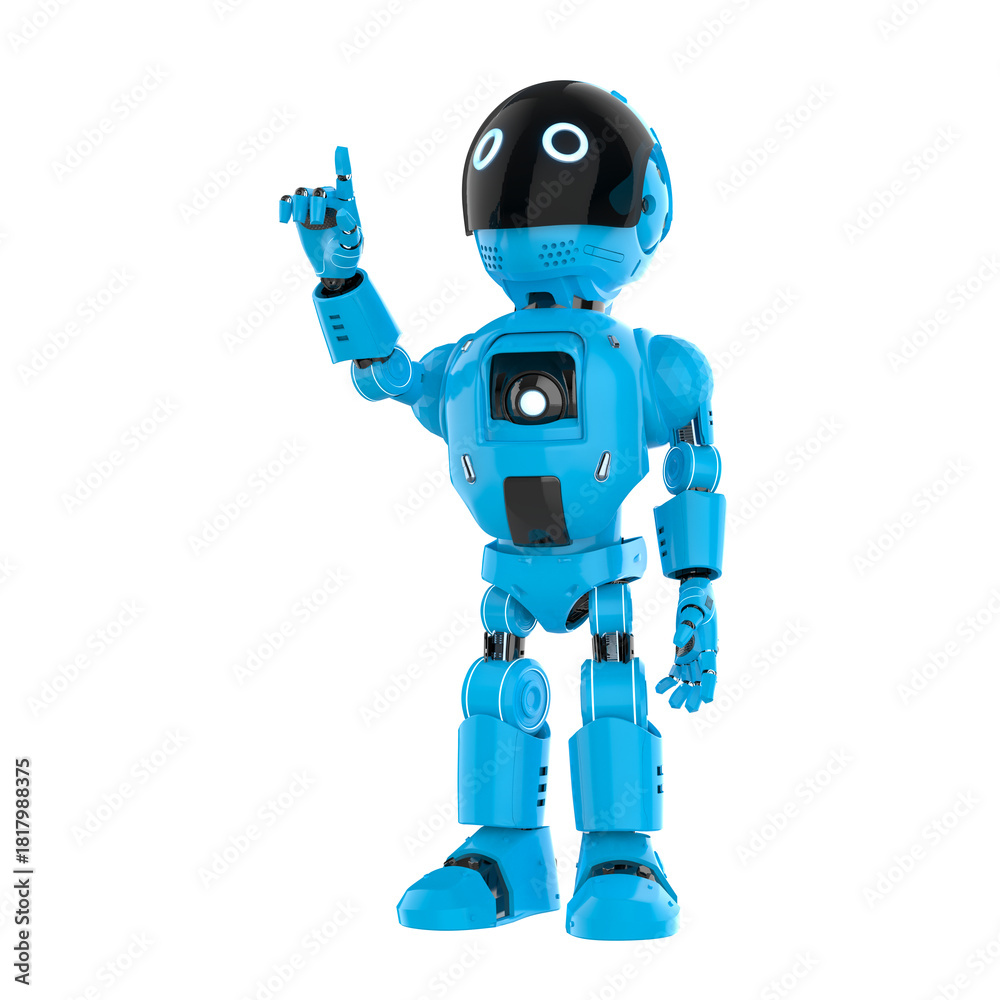 Cute and small artificial intelligence personal assistant robot finger point isolated #1817988375