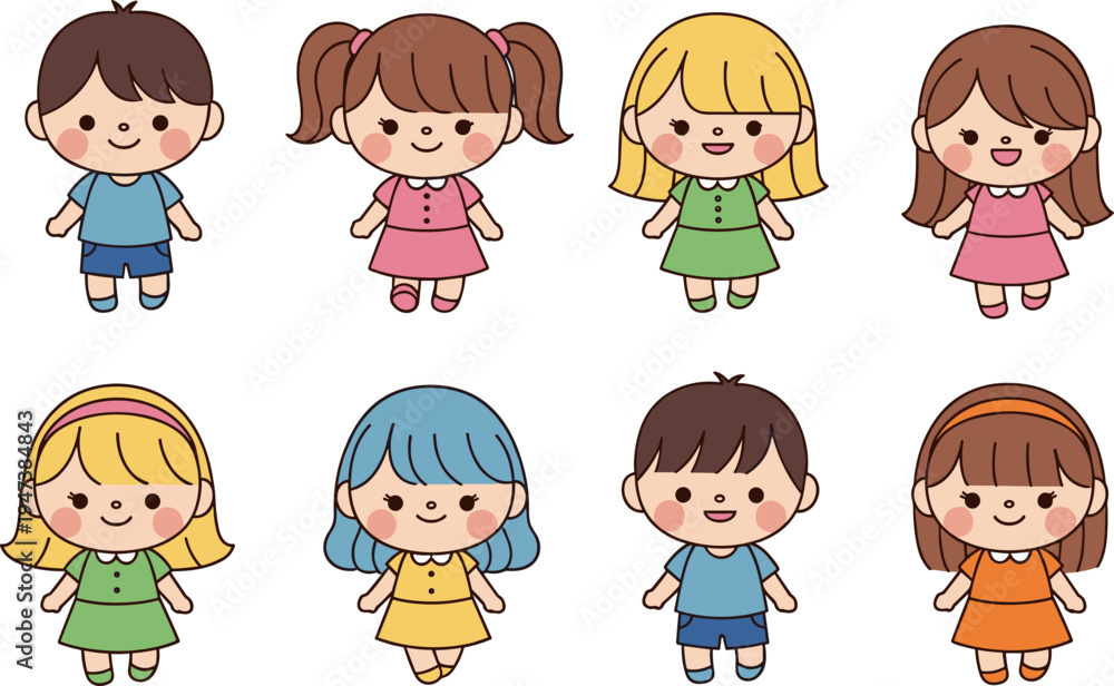 Cute cartoon kids character set vector illustration, happy children boys and girls collection, adorable child avatars design #1947384843