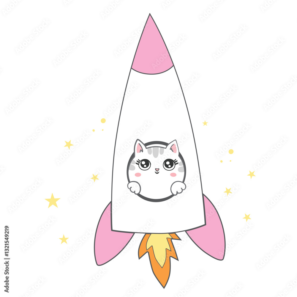Cute Cat Riding Rocket Cartoon Vector Icon Illustration. Animal Science Icon Concept Isolated Premium Vector. Flat Cartoon Style #1321549219
