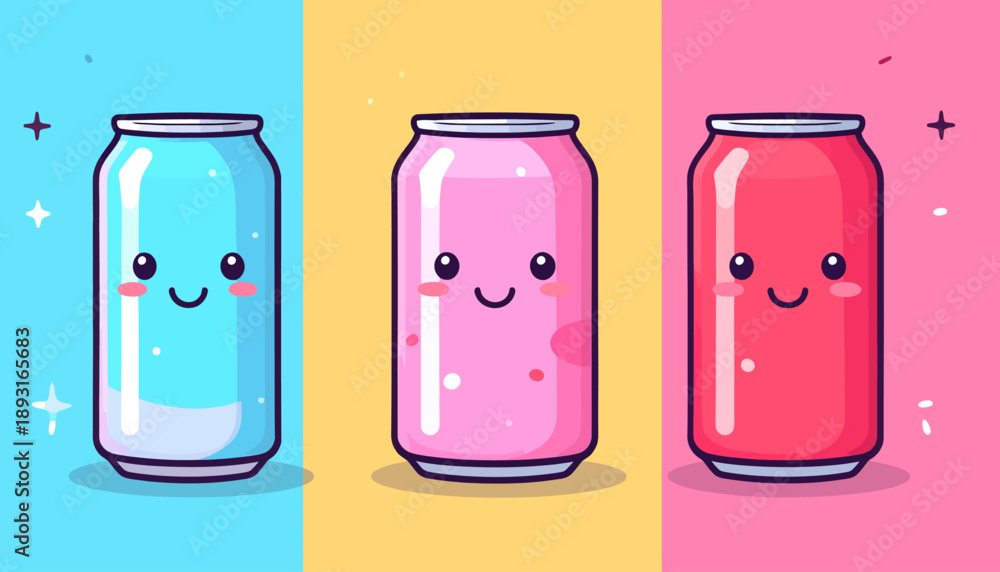 Cute Kawaii Soda Cans: Drink Illustrations #1893165683