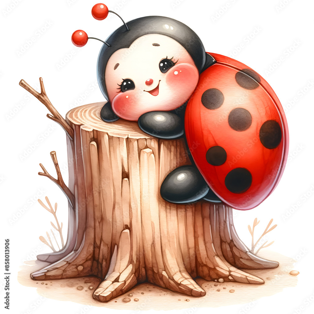 Cute ladybug watercolor clipart with transparent background #858013906