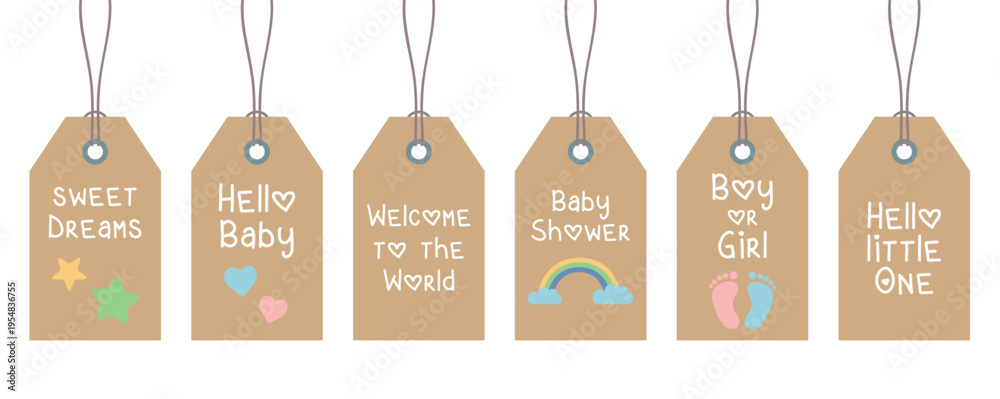 cute newborn baby paper tag set minimalistic design vector illustration #1954836755