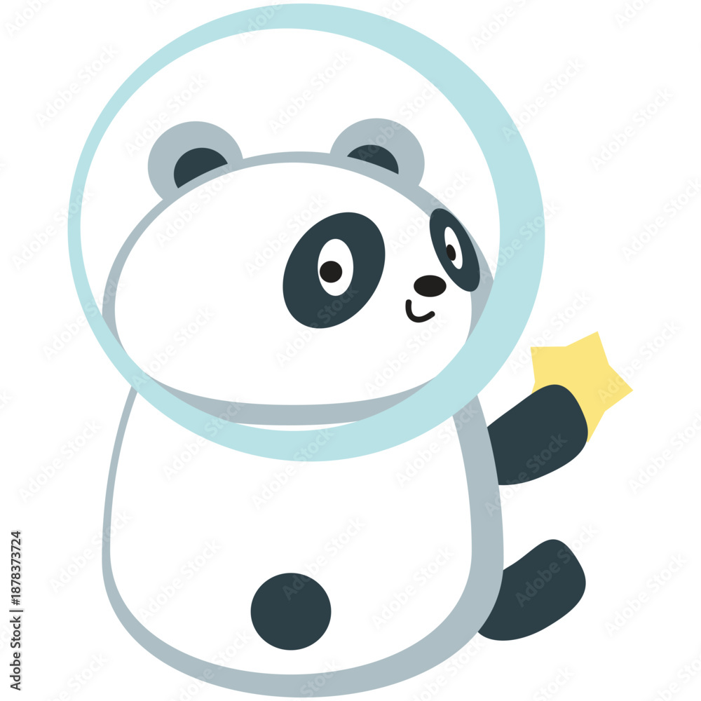 Cute panda cosmonaut vector. Funny cartoon space character icon. Comic bear animal spaceman in astronaut helmet sitting and holding star isolated on white background #1878373724