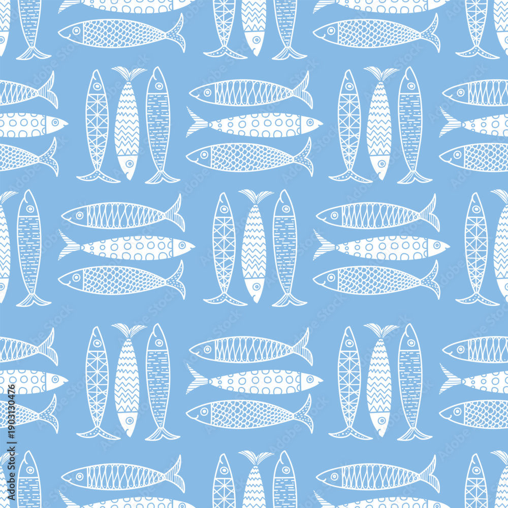 Cute sardines. Kids background. Seamless pattern. Can be used in textile industry, paper, background, scrapbooking. #1903130476